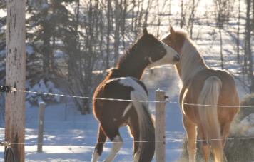 | Midas with his best friend, a 2yr old gelding. He loves to play and adores company! |